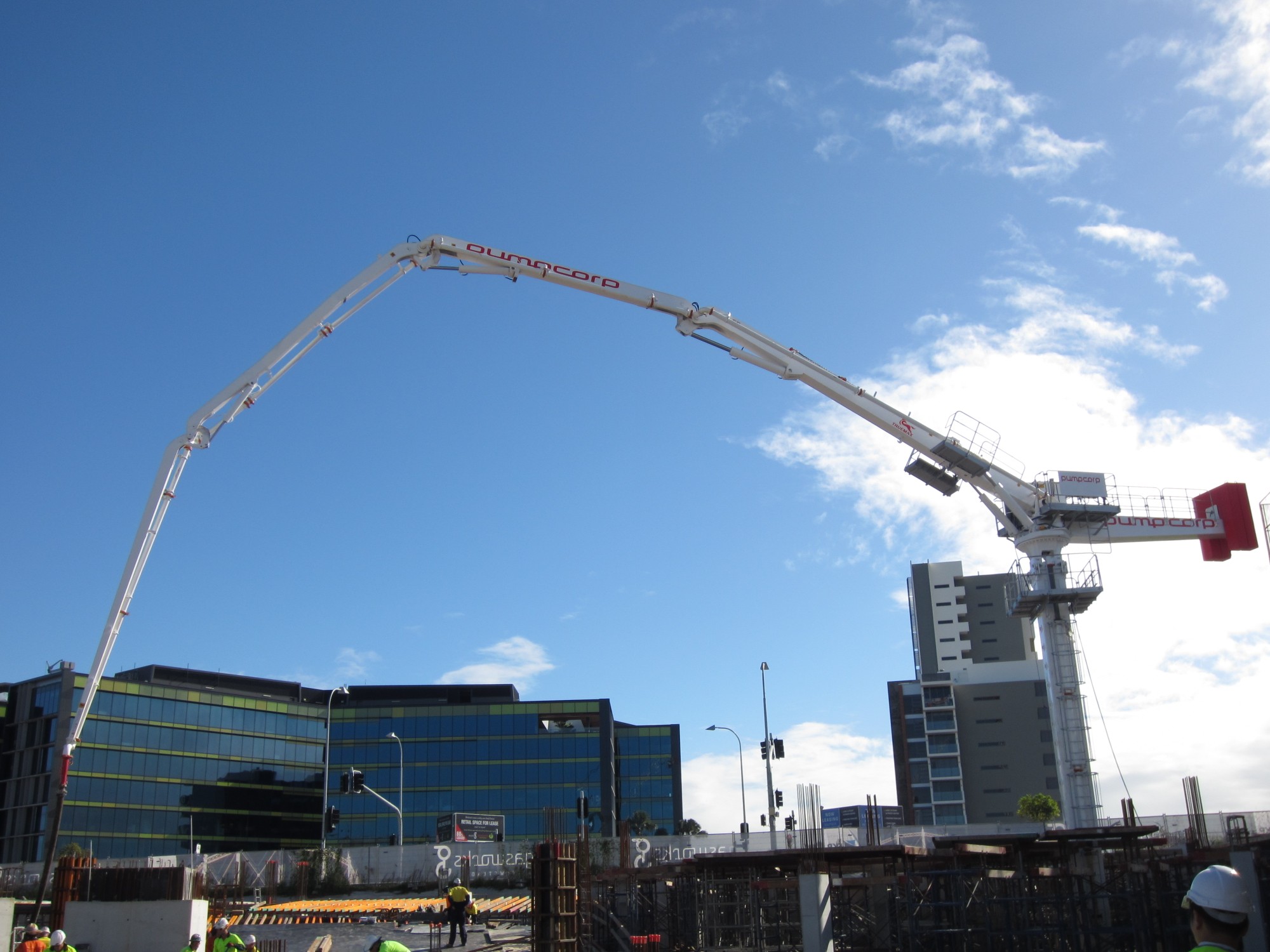 38米塔式自動布料機利用塔機的標(biāo)準(zhǔn)節(jié)進行安裝爬升,全自動混凝土布料,360度液壓齒輪旋轉(zhuǎn),遠程無線遙控進行操作,2人即可混凝土布料,節(jié)省人力,提高混凝土布料效率,施工無冷縫。